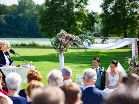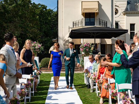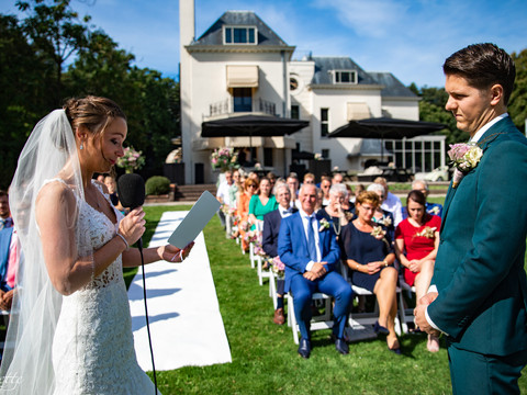 30 augustus 2019 was de dag voor Dionne en Tom. En wat een geluk. Het was stralend weer, dus de buitenbruiloft kon doorgaan! Zij trouwden bij Landgoed Ter Werve in Rijswijk. Wat een schitterende locatie is dit!