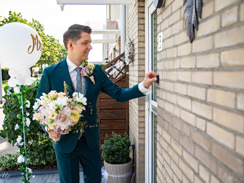 In de ochtend startte ik bij Dionne voor The Getting Ready. Daarna naar Tom, die hulp kreeg van zijn broer. Voor de First-look had Dionne eerst nog even een momentje samen met haar vader, die voor het eerst zag hoe zijn dochter getransformeerd was in een echte bruid. Prachtig! Tom belde aan en daar zagen de bruid en bruidegom elkaar voor het eerst. Klaar voor hun trouwdag! Na wat kleine opstart problemen met de kever, lukte het toch om op weg te gaan naar het landgoed.
